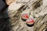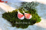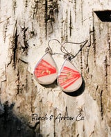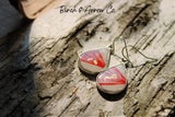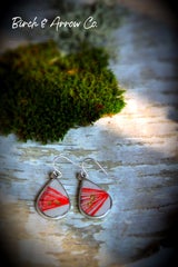 - Sunburst red resin on birch silver earrings, with 24k gold leaf.